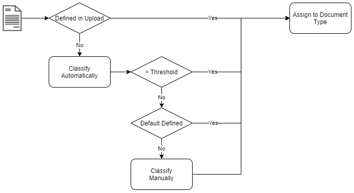 It is first checked whether a document type was already specified during the upload. Subsequently, the automatic classification is performed and for each document type a probability is determined to which the document belongs to the document type. If the probability is high enough for a document type, this document type is used.