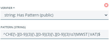 Candidates that do not contain the specified `pattern` are rejected. In this case only Swiss vat numbers are allowed